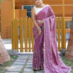 Pure Soft Silk Saree with thread handwork, floral, and cutwork design. Elegant all over. Priced at ₹4,899.00.